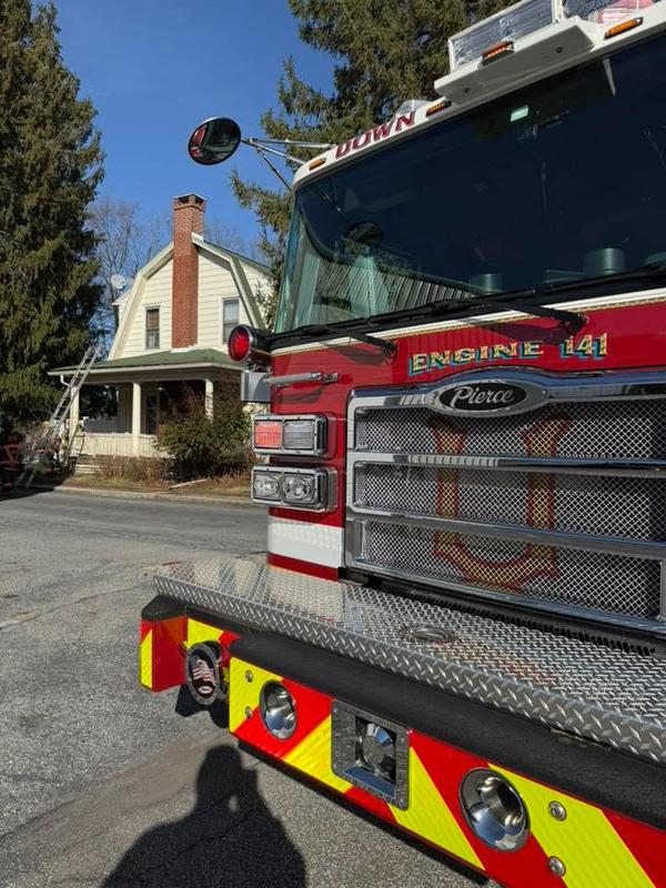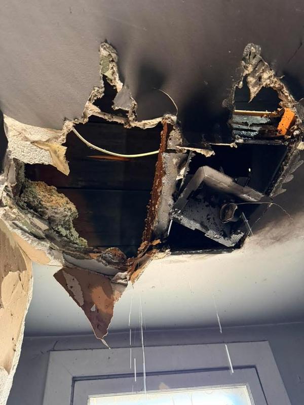 | Upon arrival crews had normal conditions from the exterior. Crews entered and found smoke on the second floor. A Crosslay was deployed and crews used a can to knock a fire found in the ceiling fan located in the bathroom. Crews pulled the dropdown access and found fire in the attic , the Crosslay was used to extinguish.